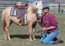 Kittee has been boarding horses for about 20years. Her life-long love of horses reached full fruition when she bought RiverMusic Ranch in 2002. She owns five equines currently. Jasmine, shown here younger and plumper, recently passed away. Kittee's other equines include pasture-pet Miles the Mule, Chief the geriatric Appaloosa-cross horse, Arabian Wryly, Quarterhorse Palomino Nugget, and Quarter-Arab Tiki. Kittee does most of the daily work and care for the horses and almost all of the maintenance on the ranch's 17 bottom acres. She is very hands-on and involved with all horse care at all times.