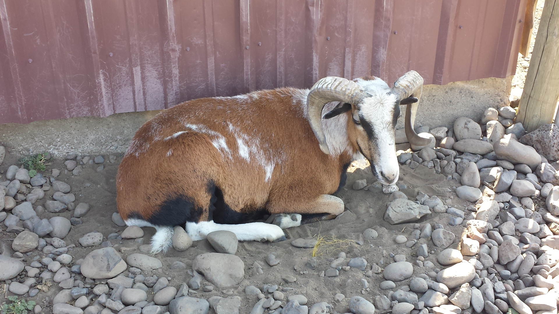Goats and sheep don't play the same way. Here, the two species are carefully exploring how to use their horns and heads.