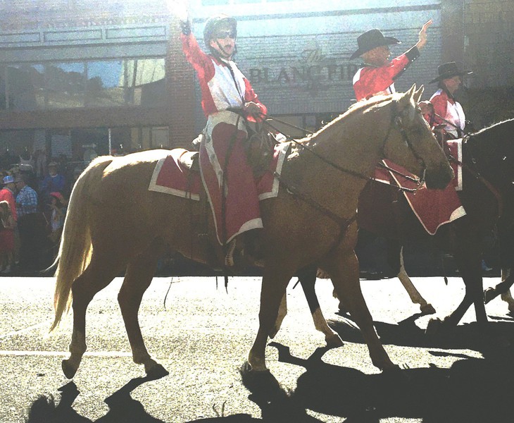 Here are numerous shady and sunny photos of Nugget and owner in the 2023 Westward Ho! Parade.